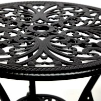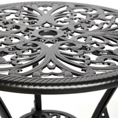 Элегантный комплект кованой мебели Secret De Maison Romance из коллекции JARDIN, состоящий из стола и двух стульев, − идеальное решение для отдыха на загородном участке. Плавные витиеватые изгибы ажурных орнаментов столешницы и спинок стульев, выполненных вручную, добавят ноты изысканности и индивидуальности в ваш интерьер. Устойчивый стол на трех ножках, дополненный миниатюрной нижней полочкой, и два удобных стула выглядят легкими и практически невесомыми. Эта прочная и практичная мебель, способна выдержать большие нагрузки, устойчива к любым погодным условиям и долгие годы сохранит свой презентабельный вид. Комплект прекрасно сочетается с мебелью из коллекции JARDIN, поставляется в разобранном виде. Для вашего удобства на стулья можно дополнительно приобрести декоративные подушки из нашей коллекции текстиля.