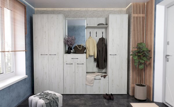 Модульная система для прихожей Италия - это модульная программа, имеющая в своем составе 16 элементов для грамотного обустройства прихожей. Фасады светлых декоров с комбинируются с тёмным корпусом.
